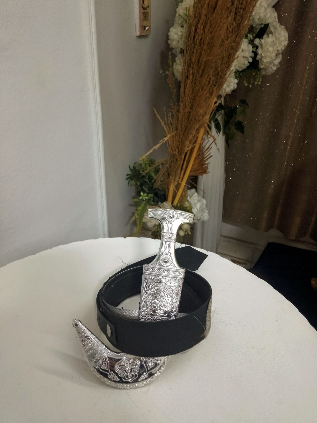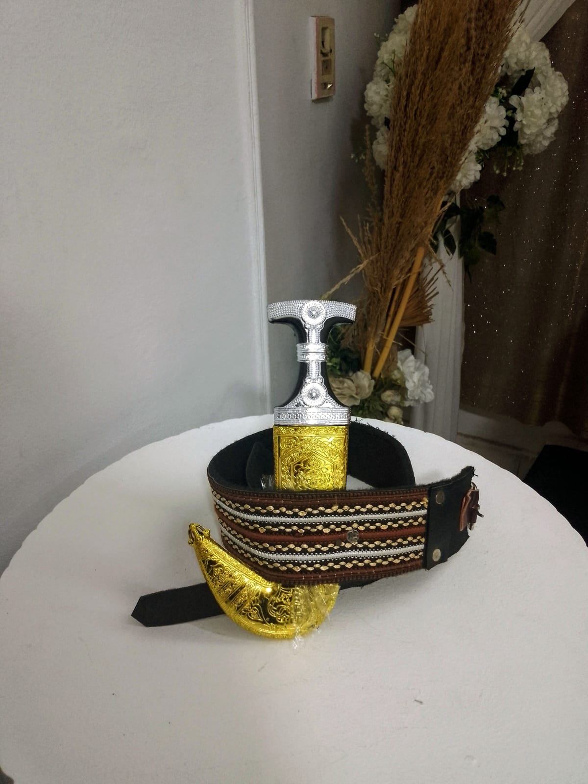 جنابي اطفال متينة غير قابلة للكسر بجودة ممتازة لون ذهبي وفضي مع حزام قماش مثبت على الخصر لعمر من (2-7) سنوات